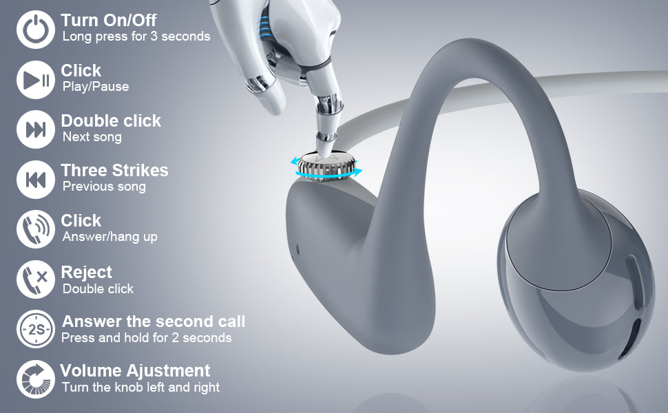 [Botón giratorio multifuncional] El diseño exclusivo de la perilla digital multifuncional rompe con el diseño tradicional. Los botones multifuncionales pueden controlar fácilmente la reproducción, pausa, saltos y llamadas entrantes. Con una conexión Bluetooth estable, puede disfrutar de 8 horas de música, llamadas o podcasts en una sola carga (1,5 horas). Cuando la batería está por debajo del 10%, se emite un aviso de voz.