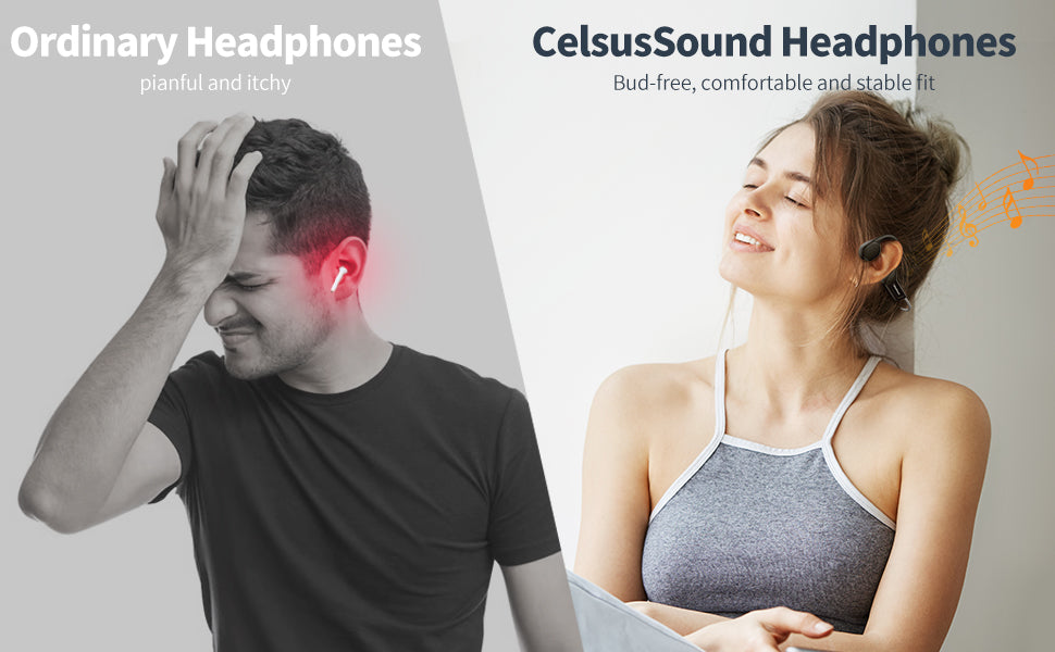 - BONE CONVECTION TECHNOLOGY: Feel the rhythm of the music with our state-of-the-art bone conduction technology. CelsusSound bone conduction headphones deliver quality audio through the jawbone, allowing you to hear music without having to put anything in your ears; the open-ear design and bud-free design ensures that you won't miss out on the sounds around you while listening to music, and it's safer and more hygienic than traditional bluetooth headphones.