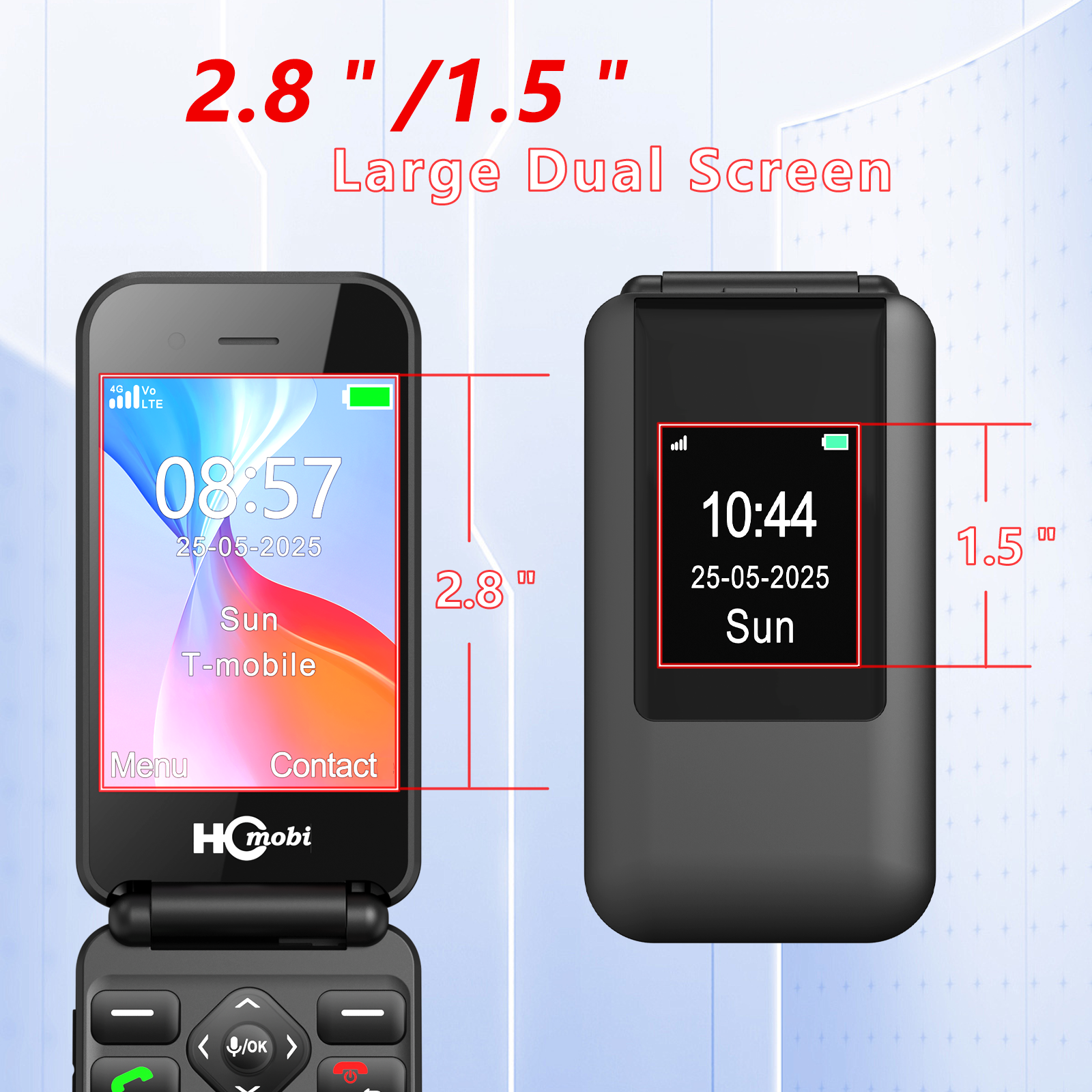 • 【4G senior mobile phone with dual 2.8"+1.5" LCD screen】This C8 4G senior flip phone is perfect for seniors,features a 2.8-inch inner screen and a 1.5-inch outer display,so users can check the time,caller ID,and text notifications without flipping it open.Offering seamless communication without a contract.with 4G VoLTE,3G WCDMA and 2G/GSM coverage,you get a more stable and wider reception signal.Easy to use with large buttons and clear volume.Ideal for the elderly,children and visually impaired users.It can also be used as a emergencies, or as a backup phone.